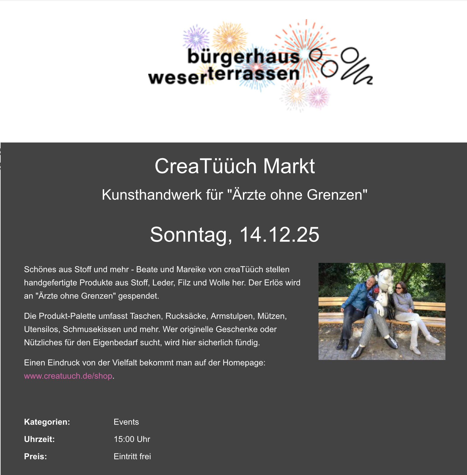 Herzlich willkommen auf unserer Website. Hier findest du kleine und feine handgefertigte Accessoires zum Verschenken oder für den Eigenbedarf. Alle Produkte sind Unikate. Auf Nachfrage fertigen wir aber auch an. Schau dich dazu einfach im SHOP um und schick uns eine Nachricht: info@creatuuch.de
